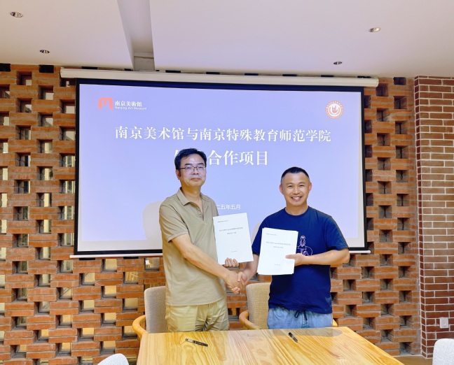 2025年5月30日,南京特殊教育师范学院美术与设计学院(阳光学院)与南京美术馆正式签署战略合作协议,标志着高校与公共文化机构在艺术教育和社会美育领域的协同发展迈入新阶段。签约仪式由南京市文联副主席李志平、南京美术馆馆长杜占军、美术与设计学院院长赵健、副院长李敏、书法与公共美术教研室主任俞明明等共同出席,双方将围绕人才培养、资源共享、美育实践等开展深度合作。