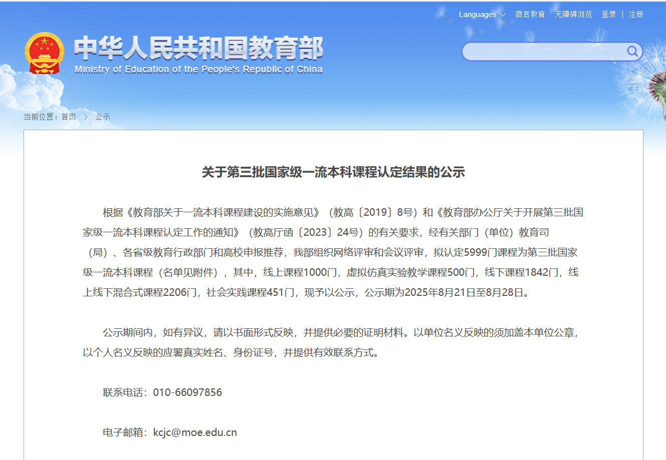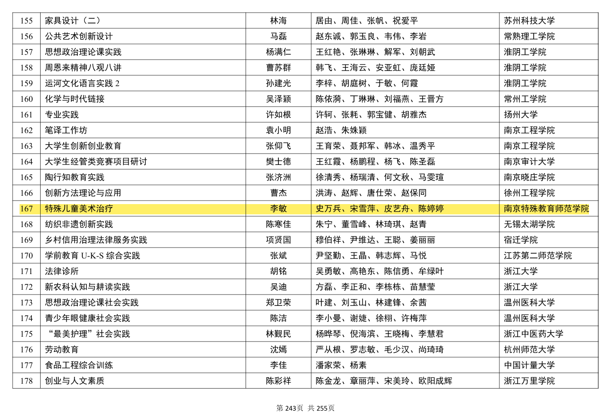2025年8月21日,教育部发布《关于第三批国家级一流本科课程认定结果的公示》文件。美术与设计学院李敏副院长主持的《特殊儿童美术治疗》成功入选第三批国家级一流本科课程。