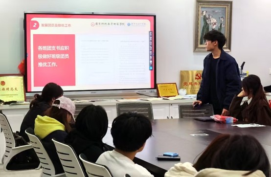 会上,负责人曹佳同学结合PPT演示,对“智慧团建”系统操作进行了重点培训,内容涵盖团课录入、职务变更、团员信息管理、组织关系转接等模块。他还明确了新学期各项重点工作安排,包括团员发展与“推优入党”工作、青年大学习督促、团费收缴、暑期社会实践和服材料收集等任务。最后,曹佳同学现场解答了团支书们的疑问,强调各支部要切实履行职责,扎实推进工作,不断提升团组织的引领力、组织力和服务力。