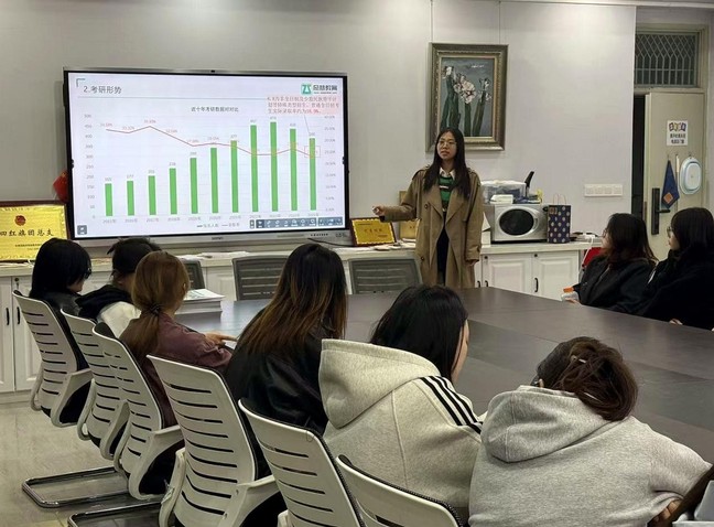 分享会伊始,任成新老师以当下就业背景与考研形势为切入点,结合具体数据与实际案例,直观呈现当前考研现状,让同学们对考研竞争环境有了清晰认知。随后,她围绕专业前景展开分析,提出“专业+技能+学历=王炸”的核心观点,为同学们梳理了未来发展的核心竞争力构成。在考研干货讲解环节,任老师从基础常识出发,系统解读了学硕与专硕的核心区别、考研英语的能力要求、试卷题型构成、关键时间节点及成绩查询流程等关键内容,帮助同学们全面掌握考研备战要点。同时,她针对不同阶段的备考需求给出具体建议,有效解决了同学们在复习规划中的困惑,为大家注入了备考信心与动力。分享会最后,任老师对在场备考生给予了充分的肯定与鼓励,希望同学们能以坚定的信念投入考研备战,顺利实现升学目标。