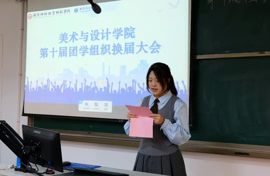 为发挥学生 “自我教育、自我管理、自我服务” 作用,筑牢学院与学生的沟通桥梁,11 月 12 日,美术与设计学院第十届团学组织换届大会在博韵楼 111 召开。学院党总支副书记彭琳、全体辅导员出席会议,第十届团学组织全体成员参会,会议由李洺锐同学主持。