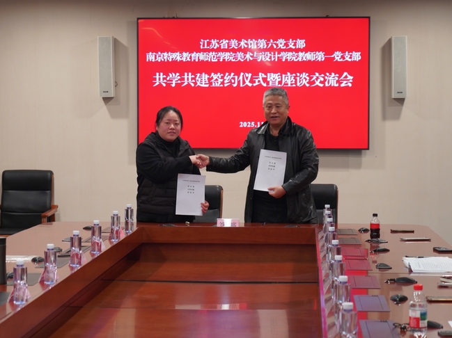 11月26日下午,美术与设计学院教师第一党支部与江苏省美术馆第六党支部共学共建签约仪式暨座谈交流会在江苏省美术馆举行。美术与设计学院党总支部书记薛皓洁、院长赵健携党员师生赴馆,得到江苏省美术馆馆长兼党总支书记王法、副馆长梁雨、第六党支部书记孙俊等接待并共同出席活动。
