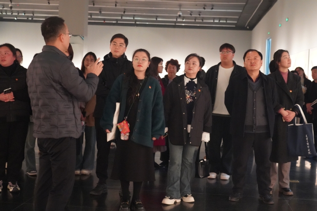 签约仪式结束后,与会人员在梁馆长、孙书记导览下,我院党员师生参观了美术馆两个馆区的画展,大家在实地观摩中进一步增进了解。