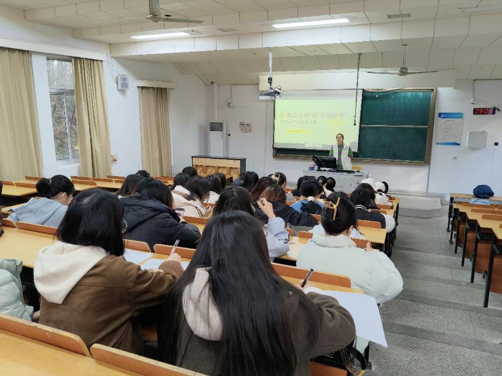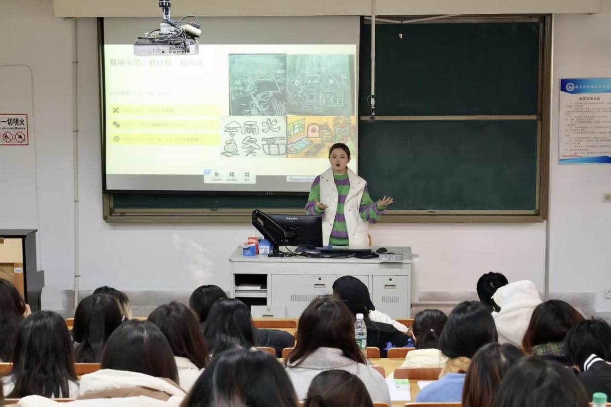 2025年12月10日上午,美术与设计学院在博韵楼111教室开展了一场教育研学讲座,主题为“从纸上谈兵到实战教学——教师成长的必经之路”,讲座由美术学(师范)系主任何旭主持,南京市长江路小学美术教师张思瑶受邀担任本次讲座主讲人,学院报考教资的学生们积极参与了本次活动,美术学教研室陈新教授及梁燕副教授也出席了本次讲座。