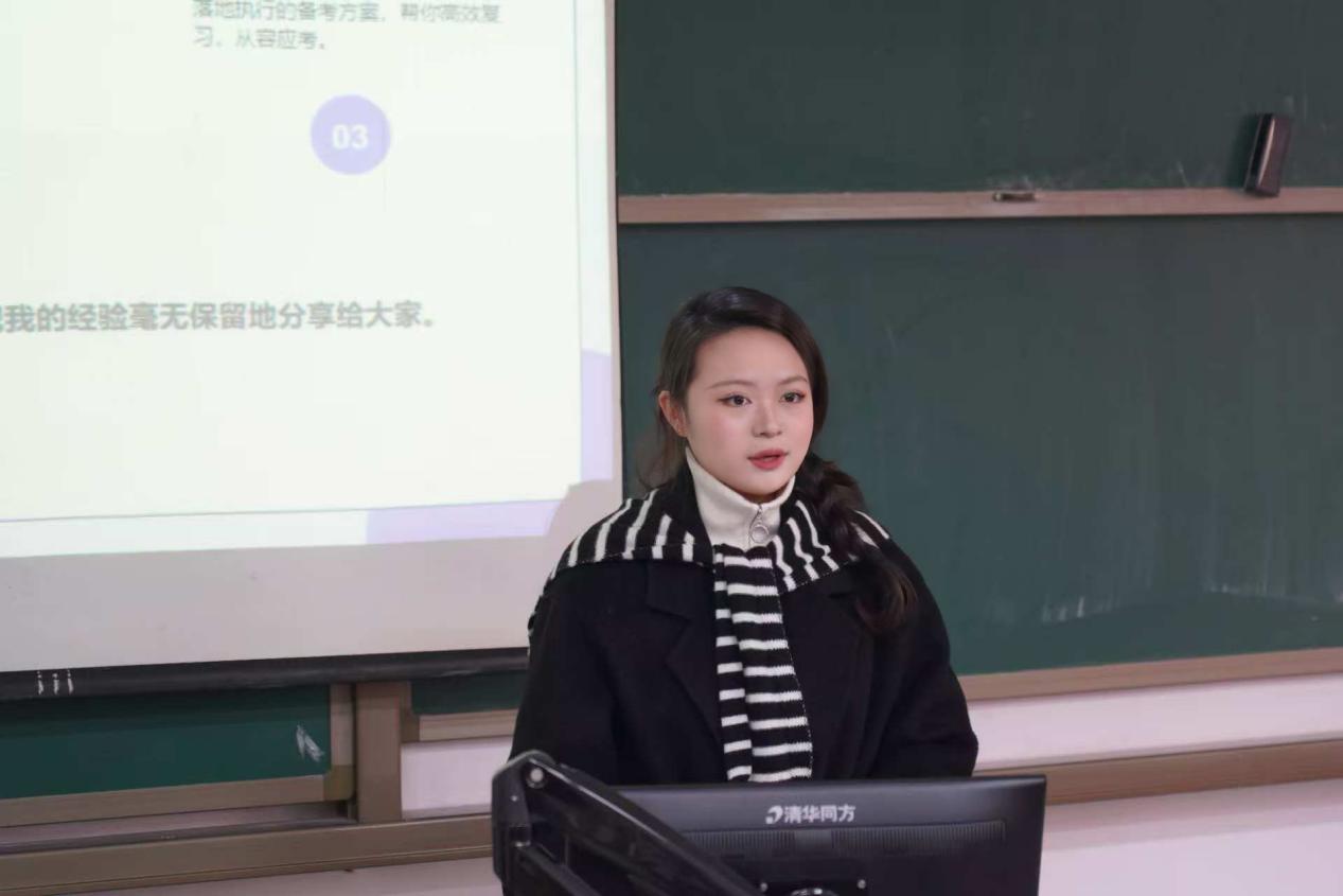 应试技巧环节,吴璟怡学姐结合常见失分点,详细讲解了客观题、主观题及实操题的审题要点与答题规范,提醒大家规避审题不清、格式错误等常见失误。面对新生普遍存在的备考焦虑,她分享了即时缓解方法与长期调适策略,鼓励同学们接纳自身节奏,通过扎实复习建立自信。互动答疑环节中,她针对同学们提出的复习重点梳理、薄弱学科突破等问题,结合自身经验给出针对性建议,现场交流氛围热烈。