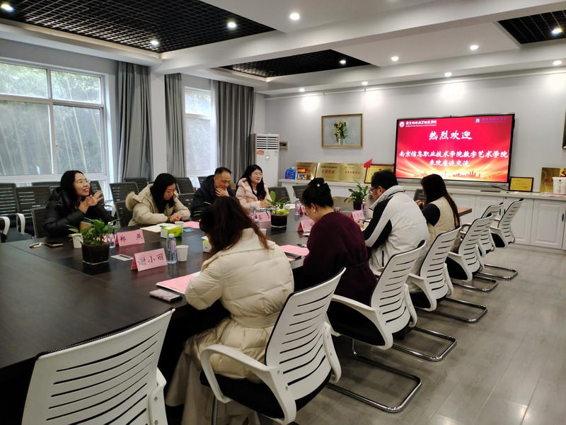 为推动艺术教育创新发展,深化校际合作,2026年1月6日上午,南京信息职业技术学院数字艺术学院副院长徐俊一行4人赴我院开展调研交流活动。美术与设计学院院长赵院、副院长李敏、行业导师谢小丽等参加会议。会议在博韵楼109会议室举行。
