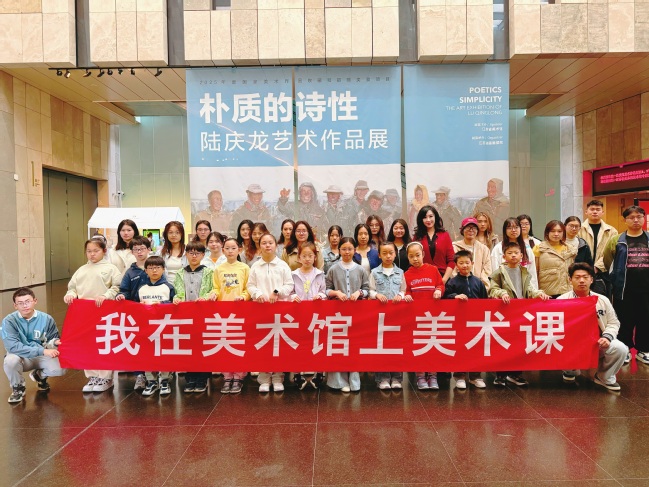 2025年11月2日下午,我校美术与设计学院副院长李敏带领南京市五老村小学、南京市秦淮第一中心小学、南京外国语学校雨花国际学校等十余名青少年在江苏省美术馆开展了“我在美术馆上美术课”系列美育活动,美术与设计学院教师第一党支部于莉老师和二十余名大学生志愿者参与了此次活动。本次活动以“平凡生活藏诗意”为核心理念,将艺术赏析与生活感悟深度融合,让孩子们在美术馆的沉浸式氛围中,学会从朴素作品中发现美、从平凡日常中汲取创作灵感,在心中种下尊重生命、热爱生活的美育种子。