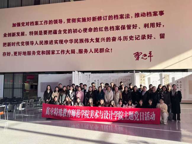 一纸档案,是历史的刻度;一份赤诚,是青春的注脚。为推动主题党日活动走深走实,11月19日南京特殊教育师范学院美术与设计学院党总支组织教师党员、团学组织核心骨干成员走进江苏省档案馆,在“长三角地区新四军档案史料展”中,于卷帙浩繁里触摸革命脉搏,在精神溯源中校准青春航向。