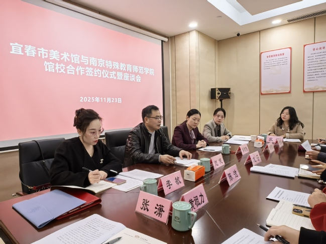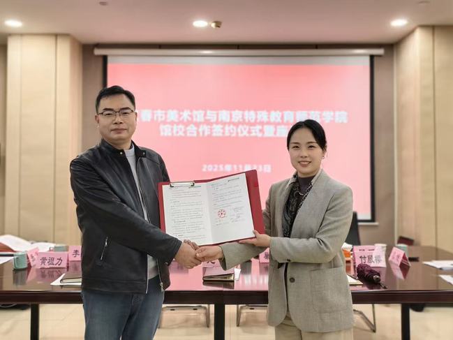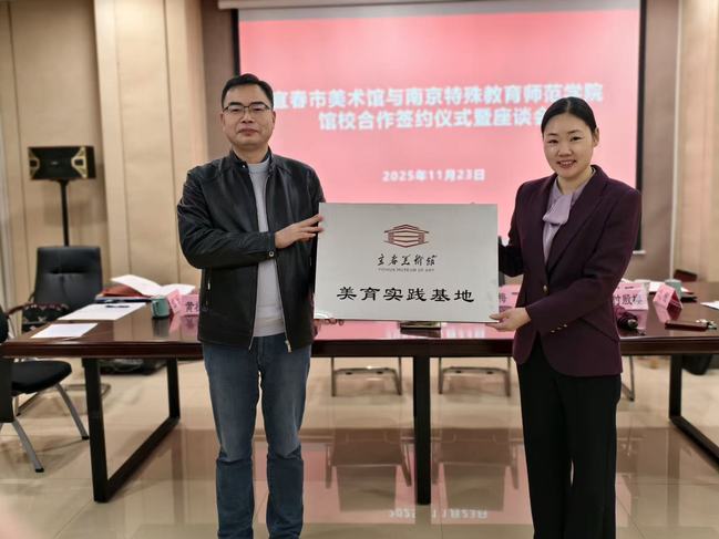 随后,赵健院长与易乐馆长代表双方签署了馆校合作协议,与巢艳梅副局长互授了“南京特殊教育师范学院实习基地”与“宜春市美术馆美育实践基地”牌匾。