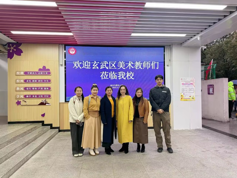 2025年11月17日下午,南京特殊教育师范学院美术学院教学院长李敏、美术学系主任何旭、特聘行业导师谢小丽及教师冯亚雄一行,专程赴南京市樱花小学开展教育调研活动并看望实习生。此行既深度参与该校艺术教研实践,实地探察数字技术赋能美育的落地成效,也与在此实习的美院学子面对面交流,为其一线教学实践提供专业指导。