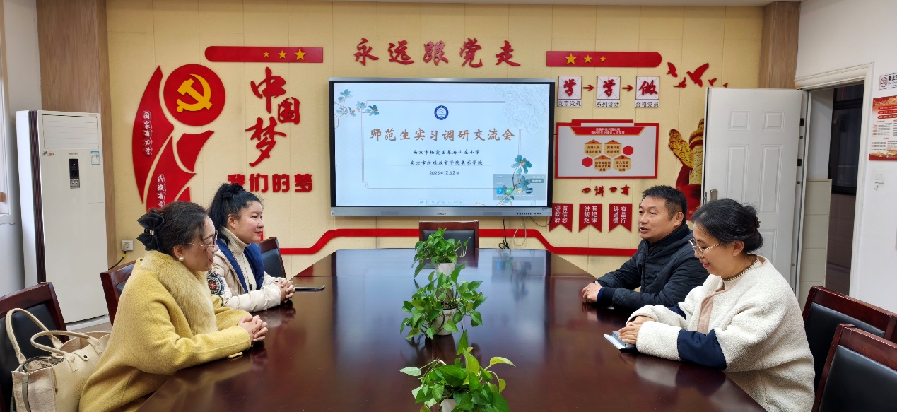 为深化校地合作,精准对接教育实践需求,助力实习生专业成长,12月2日上午,南京特殊教育师范学院美术与设计学院教学院长李敏、系主任何旭、教师冯亚雄一行赴南京市幕府山庄小学开展调研交流活动,并亲切看望在此实习的学院学子。幕府山庄小学校长毛晓雷及相关指导教师热情接待并参与座谈。
