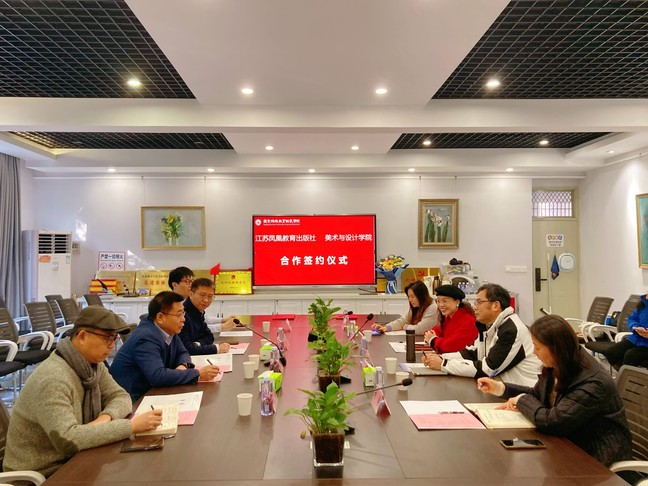 2026年1月23日上午,我院与江苏凤凰教育出版社战略合作启动仪式在博韵楼109会议室隆重举行。双方围绕“深耕学术沃土·精铸出版精品”主题,共同开启校社协同、资源共享的深度合作新阶段。江苏凤凰教育出版社社长樊明、总编辑孙兴春、艺术教育出版中心主任周晨、编辑高森等校外嘉宾,以及美术与设计学院院长赵健、副院长刘学等校内代表共同出席。启动仪式由美术与设计学院副院长李敏主持。