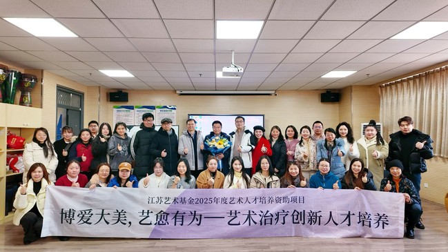 签约仪式圆满结束后,赵健院长陪同樊明社长、孙兴春总编辑、周晨主任一行前往实训楼,亲切看望了江苏艺术基金2025年度艺术人才培养资助项目“博爱大美·艺愈有为”艺术治疗创新人才培养项目的全体学员。现场,樊明社长为学员们送上殷切寄语,鼓励大家深耕艺术治疗专业领域,潜心钻研理论与实践技艺,不断锤炼专业本领、积累实战经验;希望学员们以此次校社战略合作为契机,将所学所获转化为兼具专业性与实践性的疗愈成果,积极推动艺术治疗理念与技术的广泛传播,让艺术的疗愈力量惠及更多需要帮助的群体,为社会心理健康事业发展与民生福祉提升贡献专业力量。