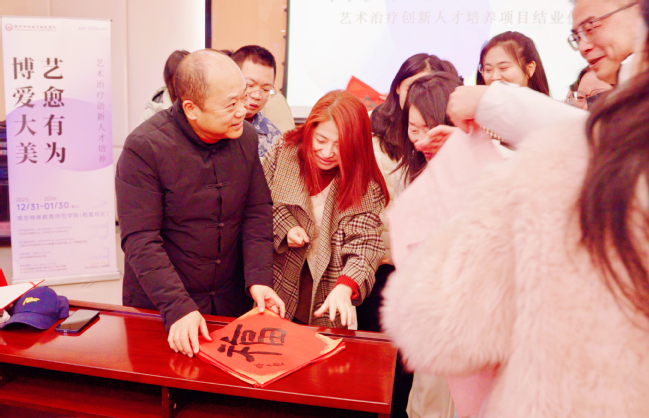 2026年1月30日上午10点,由江苏艺术基金资助、南京特殊教育师范学院主办的“博爱大美,艺愈有为——艺术治疗创新人才培养项目”结项典礼,在实训楼103隆重举行。作为江苏省首个艺术治疗领域专业人才培养项目,本次结项不仅标志着江苏艺术疗愈人才培育迈入规范化、专业化新阶段,更将为全省乃至全国艺术疗愈行业发展注入强劲动力,一批兼具理论素养与实践能力的艺术疗愈骨干正式踏上服务社会的新征程。